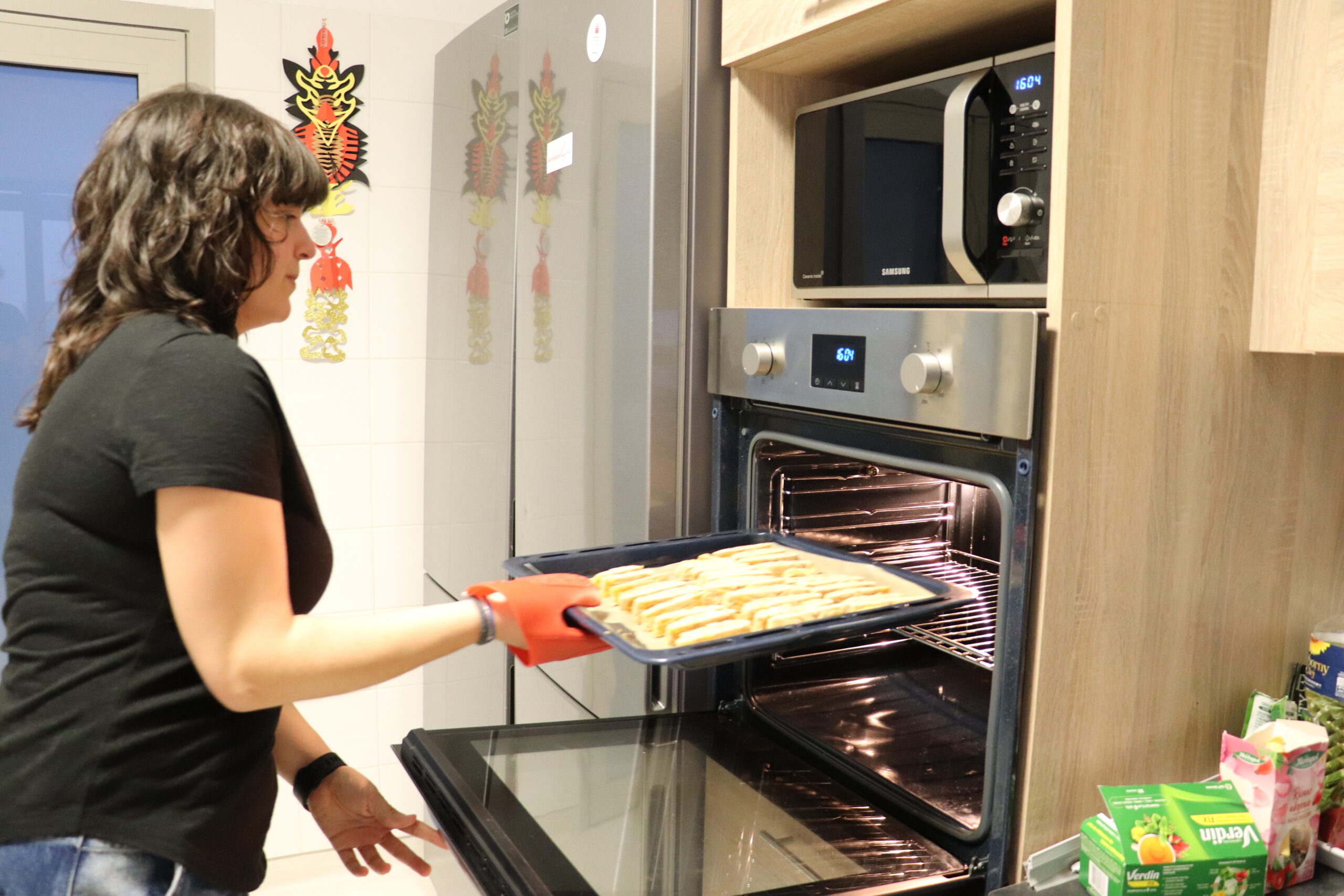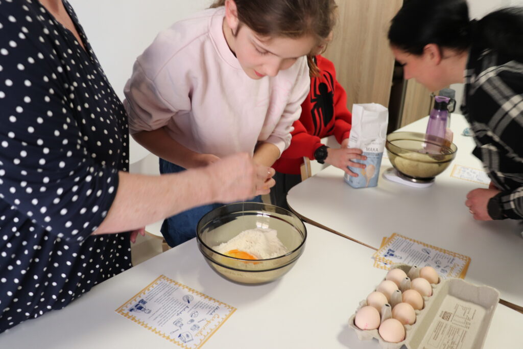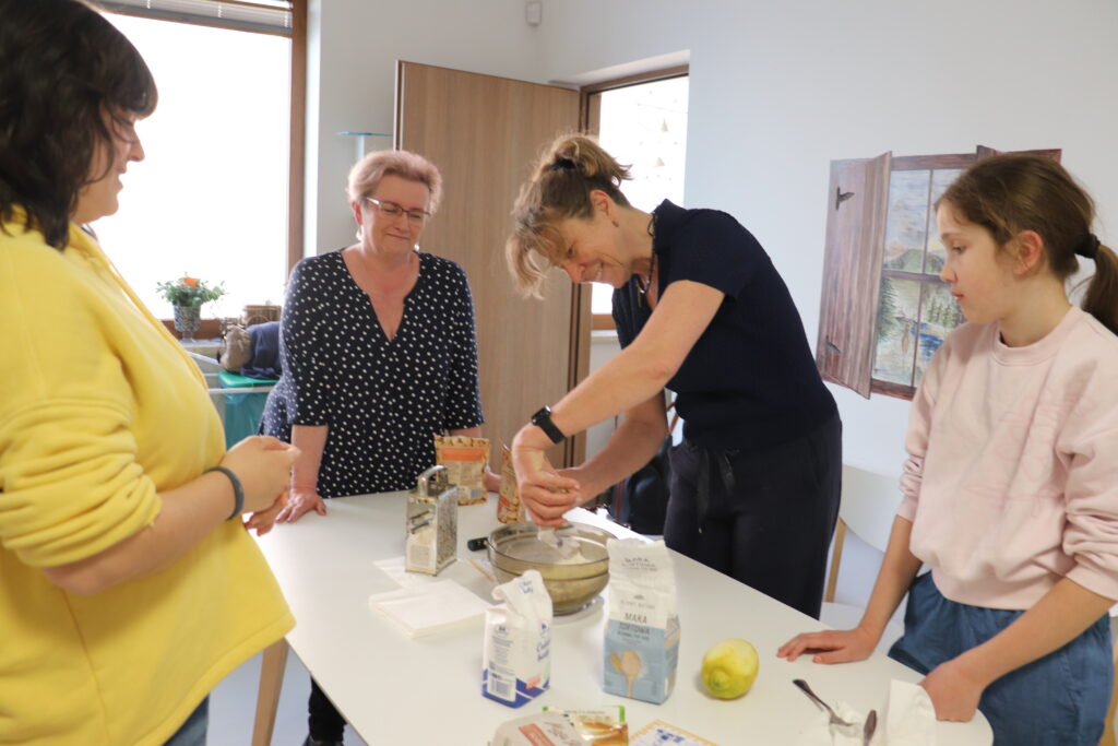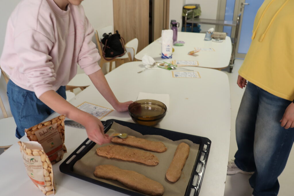 Za nami kolejne warsztaty kulinarne z Diną, znasza wolontariuszką z Hiszpanii. Poznaliśmy przepis na łatwe w wykonaniu, przepyszne ciasteczka o dość trudnej dla nas nazwie carquinyolis, z dodatkiem cynamonu, skórki cytrynowej i przede wszystkim migdałów. Przepis jest bardzo prosty, bo wykonuje się je z maki, jajek, proszku do pieczenia i wymienionych wcześniej dodatków. Efekt jest zaskakująco pyszny. Ciasteczka są opiekane na dwie strony i dzięki temu chrupiące. Smakują wybornie. Dzięki Dina!