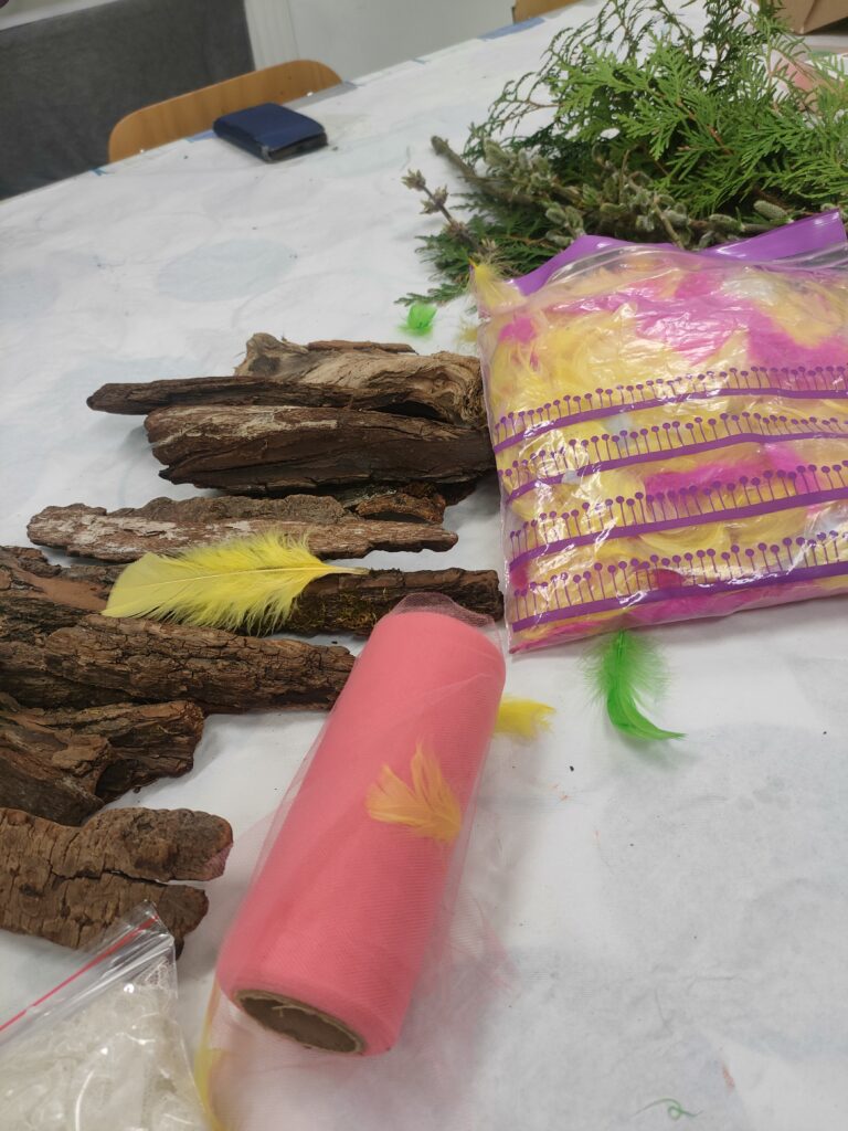Wcześniej planowane było tworzenie wianków, jednak koncepcja warsztatów trochę się zmieniła. Z przygotowanych dostępnych materiałów można było stworzyć różne formy stroików. Wszystko zależało od kreatywności uczestniczek.