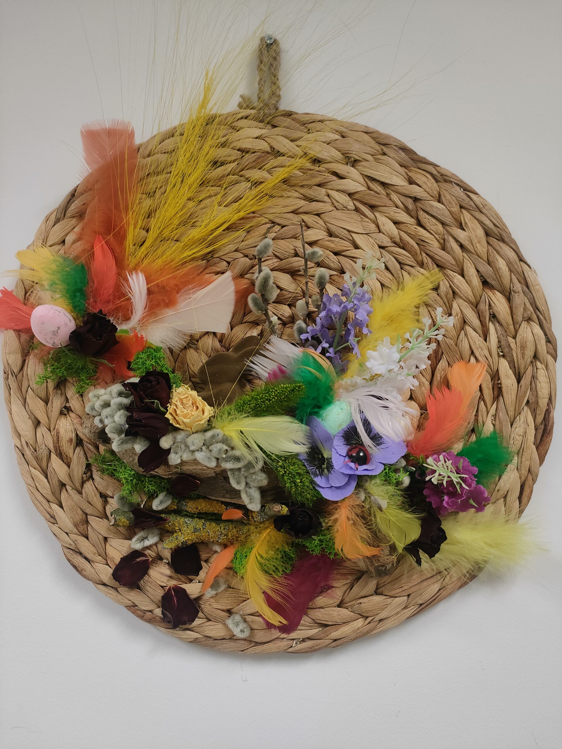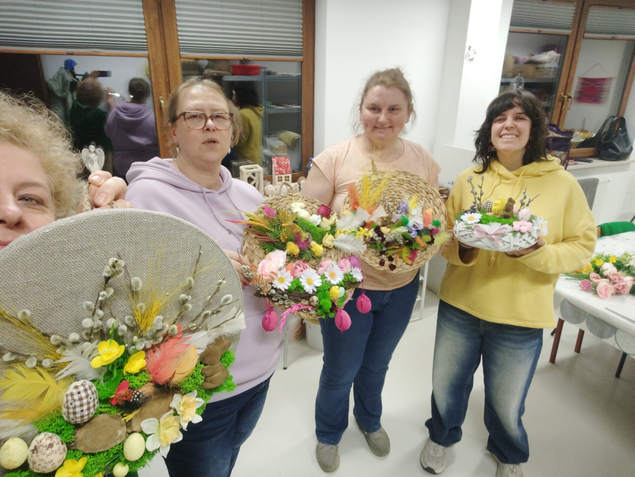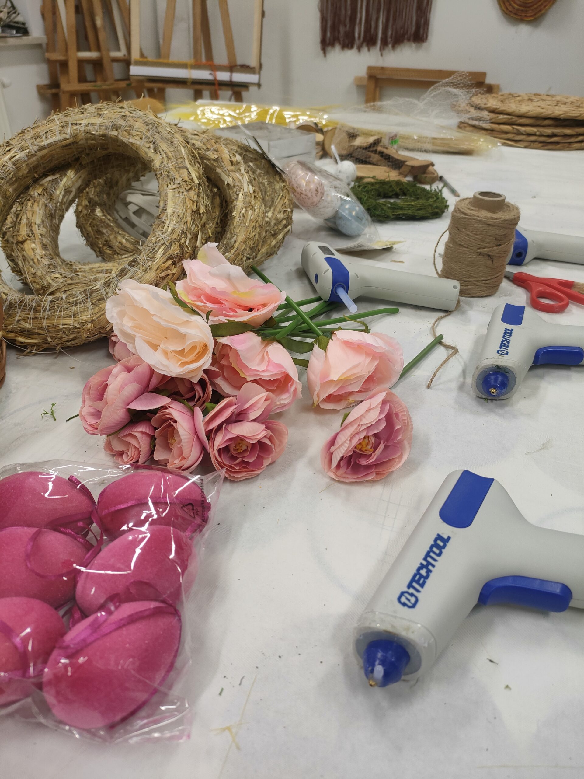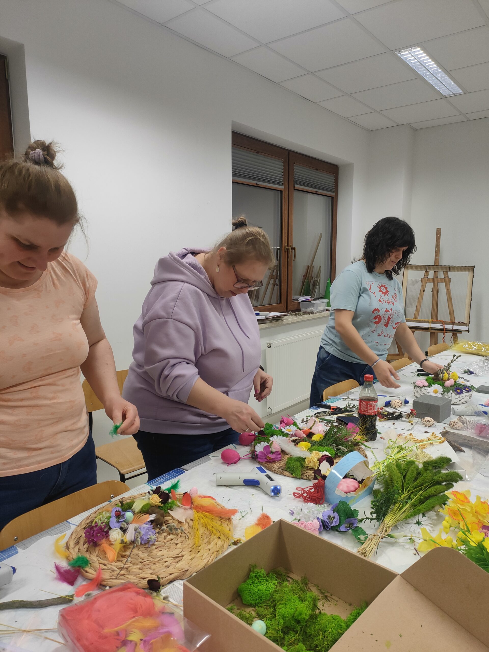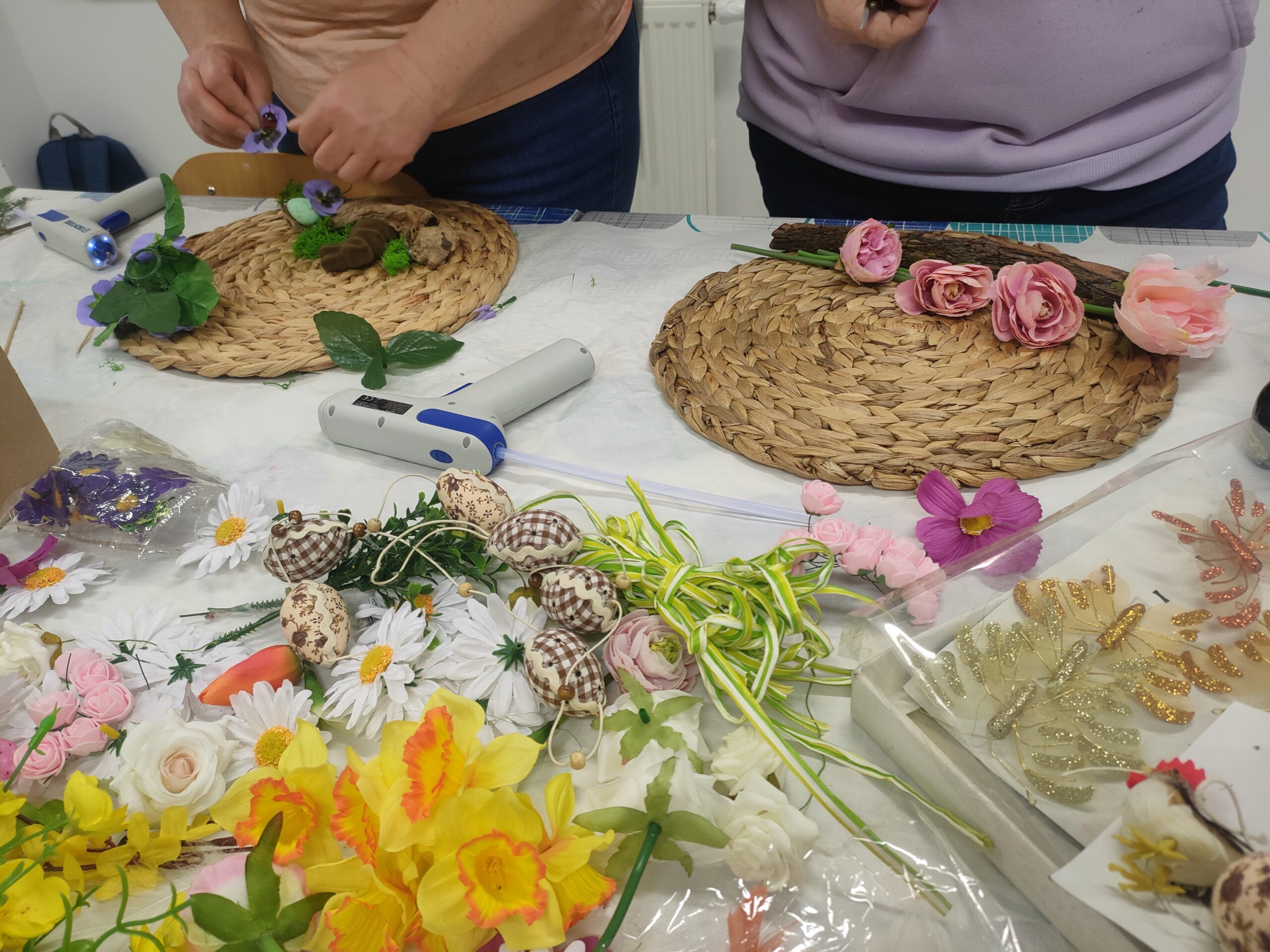 Wcześniej planowane było tworzenie wianków, jednak koncepcja warsztatów trochę się zmieniła. Z przygotowanych dostępnych materiałów można było stworzyć różne formy stroików. Wszystko zależało od kreatywności uczestniczek.