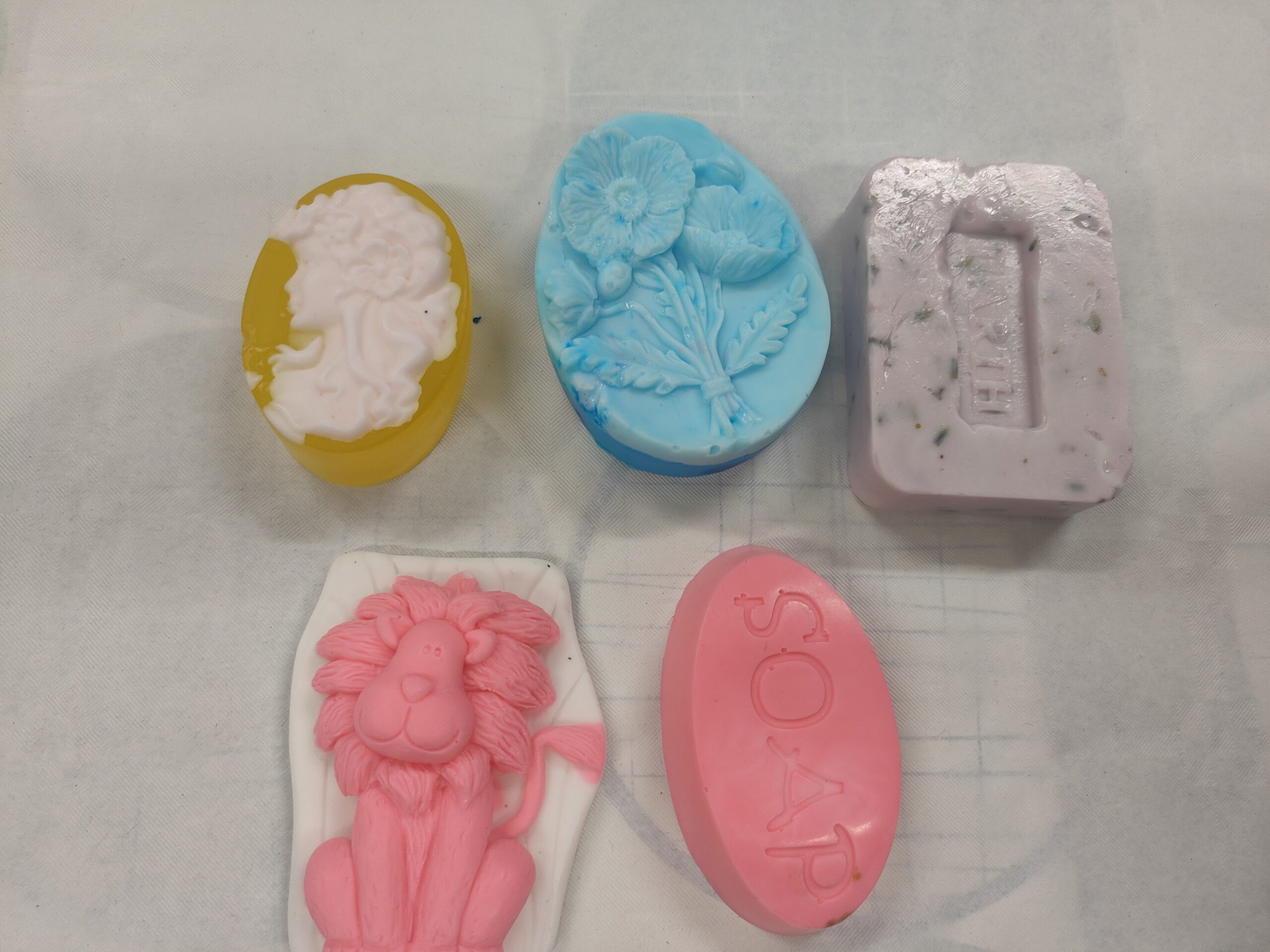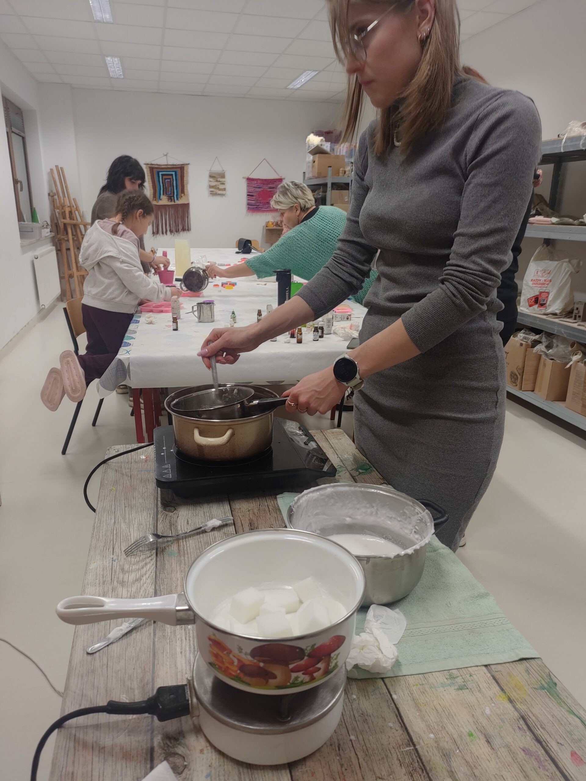 Relaks, dobra zabawa i piękne efekty, tak możemy podsumować warsztaty tworzenia mydełek glicerynowych. 🧼🤩 Uczestniczki roztapiały bazę glicerynową, dodawały do niej barwnik i olejek zapachowy i umieszczały przygotowana miksturę w foremkach. Dzięki różnym kształtom foremek udało się stworzyć fajne kompozycje. Każde mydełko ma swój urok i będzie cieszyć użytkownika.